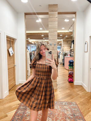 Channel your inner fashionista with the Hadley Brown Plaid Mini Dress! Featuring a trendy square neckline and short puff sleeves with elastic cuffs, this dress will make a statement wherever you go. The smocked A-line design and classic plaid pattern add a touch of sophistication. Made with a comfortable and durable shell of 82% rayon and 18% nylon. Lining:100%polyester. Upgrade your wardrobe today!