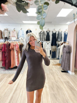 Cozy meets chic in this brown pointelle sweater dress. Featuring long sleeves, a classic round neckline, and delicate pointelle knit detailing, this dress offers both warmth and style. Perfect for layering with boots and a jacket, it’s an effortless choice for fall and winter days.