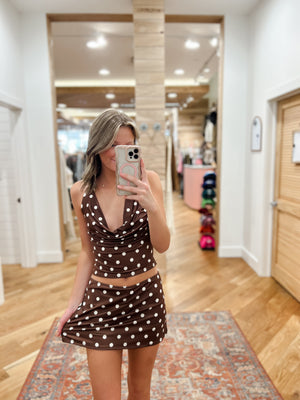 Turn heads in this chic brown halter top adorned with classic white polka dots. Crafted from a lightweight, breathable fabric, this top features a flattering halter neckline that ties at the back for a customizable fit. The retro-inspired polka dot pattern adds a playful yet timeless touch, while the cropped silhouette pairs perfectly with high-waisted jeans, skirts, or shorts. Whether you’re heading out for a summer brunch or a night out, this top brings effortless charm and vintage flair to any outfit.