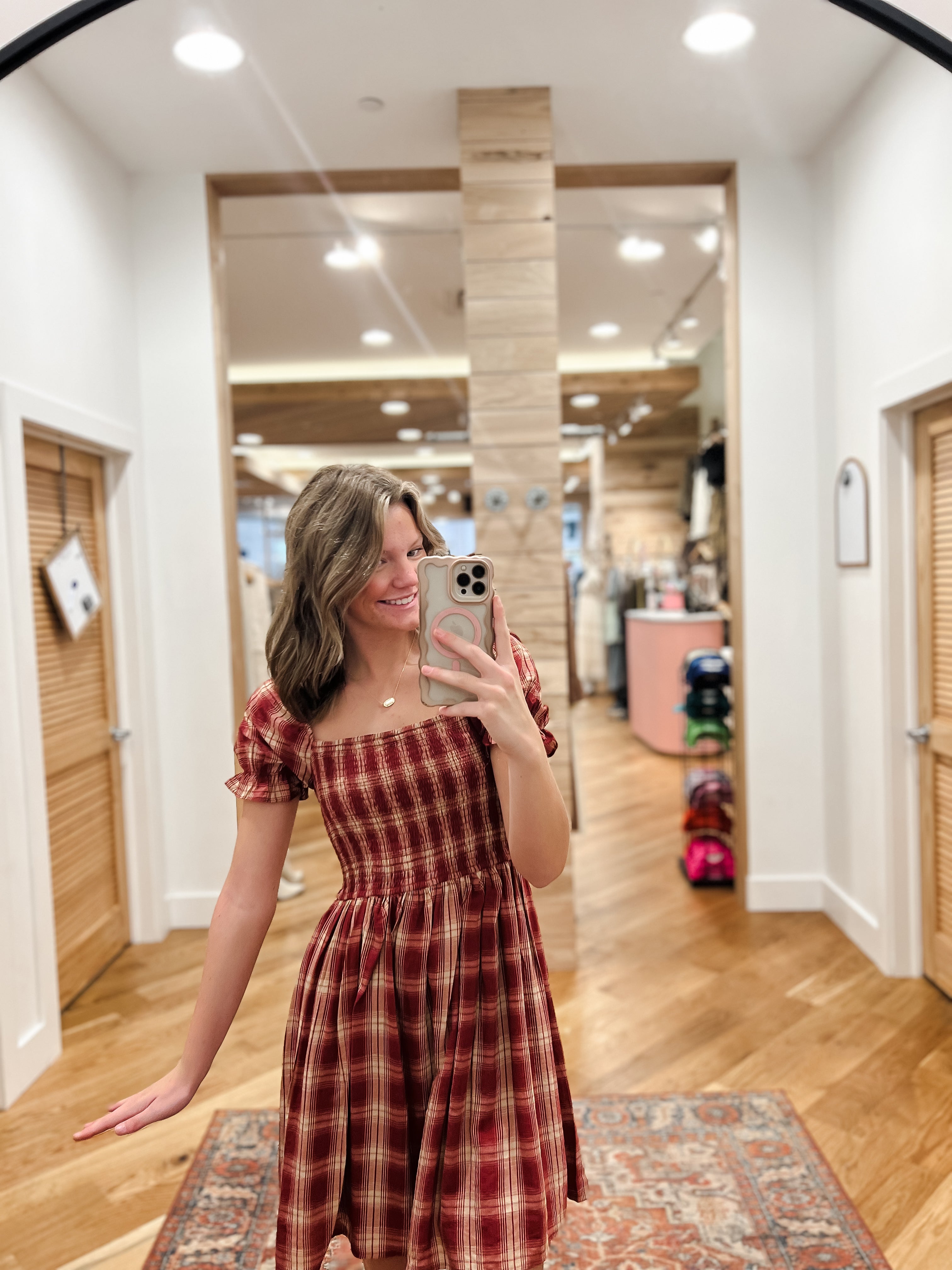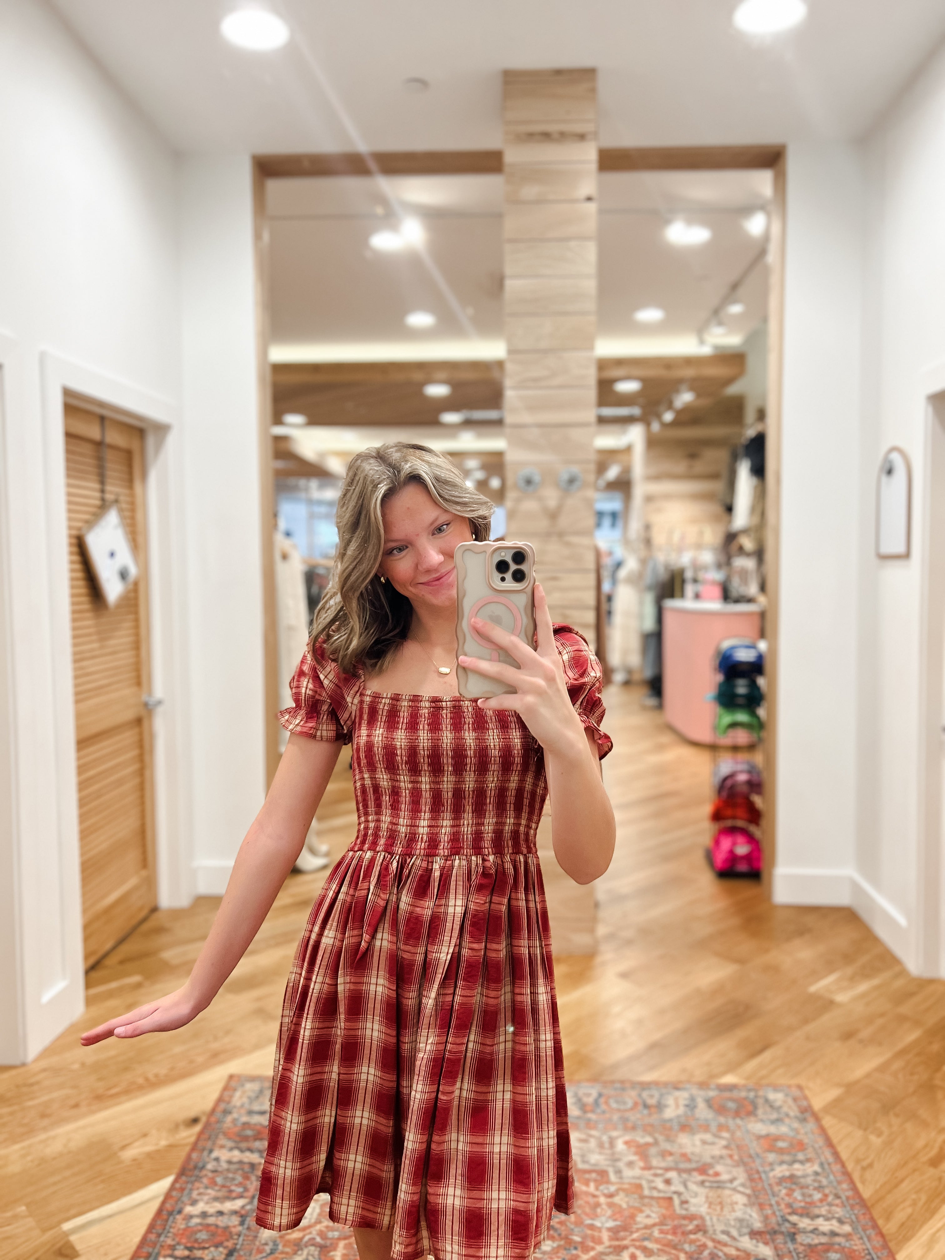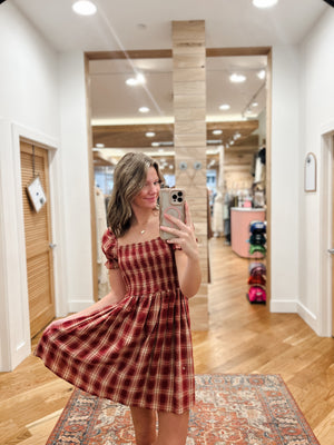 Channel your inner fashionista with the Hadley Burgundy Plaid Mini Dress! Featuring a trendy square neckline and short puff sleeves with elastic cuffs, this dress will make a statement wherever you go. The smocked A-line design and classic plaid pattern add a touch of sophistication. Made with a comfortable and durable shell of 82% rayon and 18% nylon. Lining:100%polyester. Upgrade your wardrobe today!