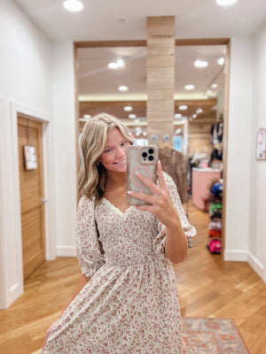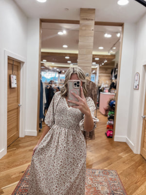 Effortlessly feminine and endlessly flattering, this floral printed midi dress features a smocked bodice that hugs your silhouette with comfort and charm. The delicate floral pattern adds a soft, romantic touch, while the flowing midi-length skirt moves gracefully with every step. Finished with subtle puff sleeves (or adjustable straps, if relevant), it’s the perfect piece for anything from garden parties to cozy brunches. Pair it with boots for fall or sandals in spring — this is a dress that blooms in every season.