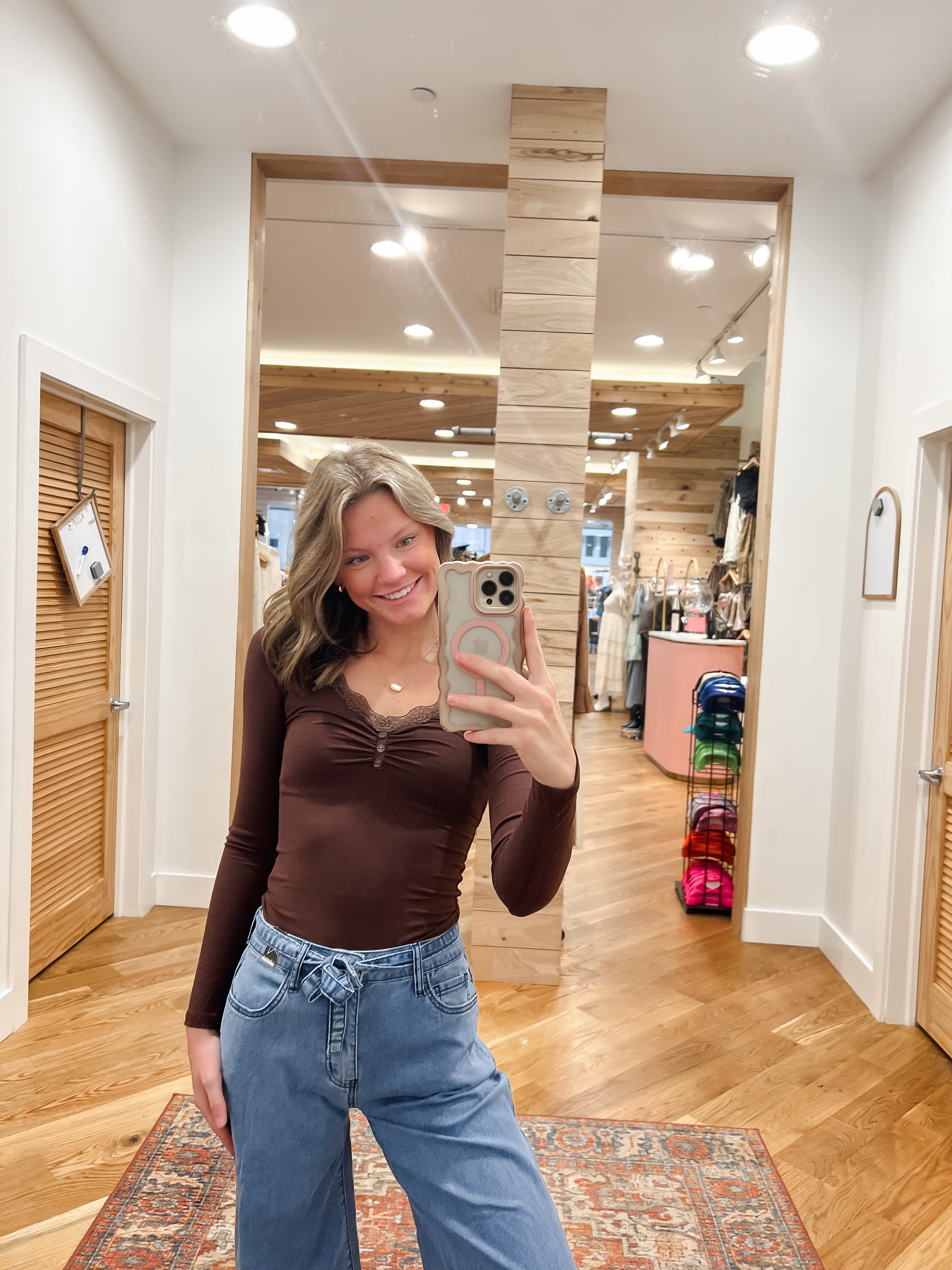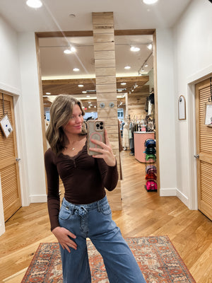 Brooke Mocha Lace Trim Knit Top