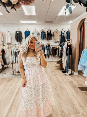Embrace effortless elegance with the Rosy Daydream Dress. This light pink maxi dress features a charming ditsy flower print, perfect for adding a touch of femininity to any occasion. Made from 100% polyester, it offers comfort and durability, so you can feel beautiful and confident all day long.