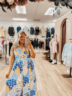 Embrace your playful side with this absolutely charming patchwork midi dress that’s bursting with personality! This eye-catching piece features a delightful mix of vintage-inspired prints - red and orange gingham checks, cheerful coral stripes, sunny yellow pinstripes, and sweet floral motifs - all pieced together in a whimsical patchwork design that feels fresh and fun.